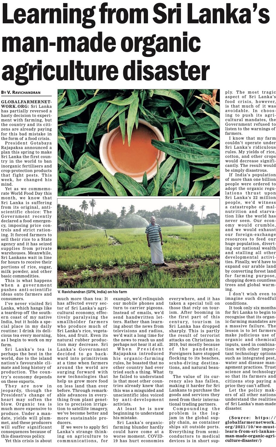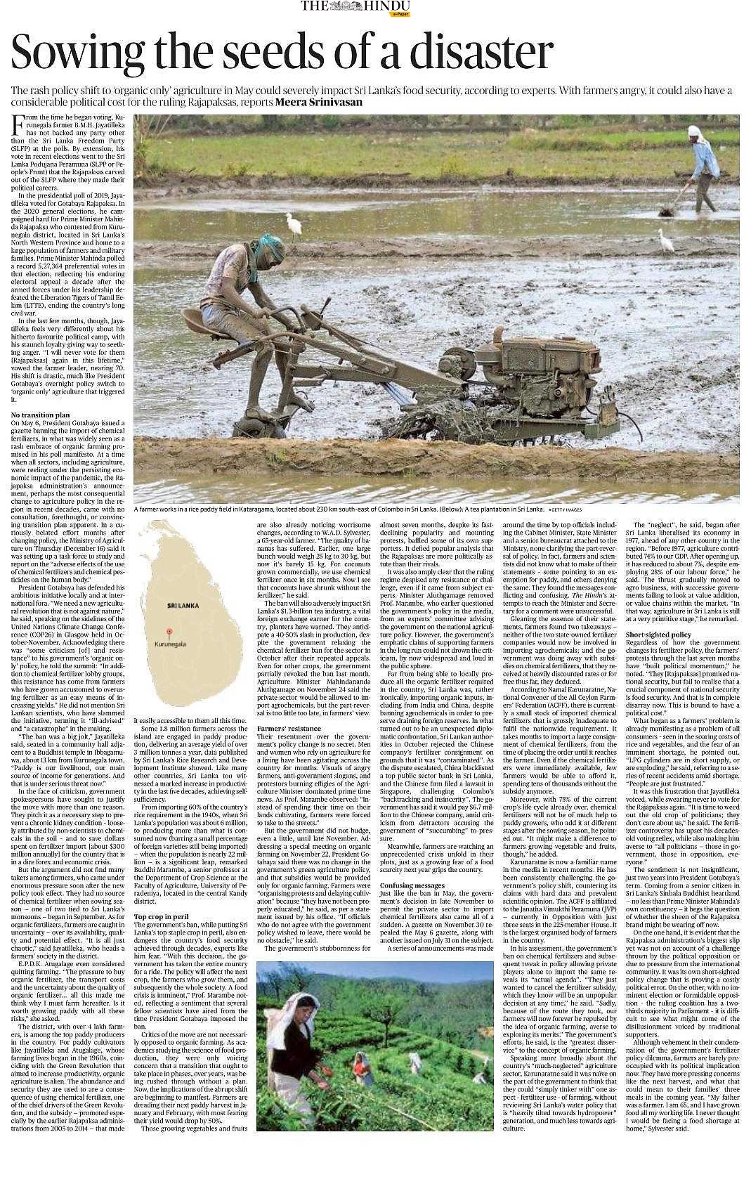 (2023) Kas mahepõllunduspoliitika on Sri Lanka majanduskriisi põhjuseks? Mis on tõde? Allikas: விகடன் | PDF varukoopia